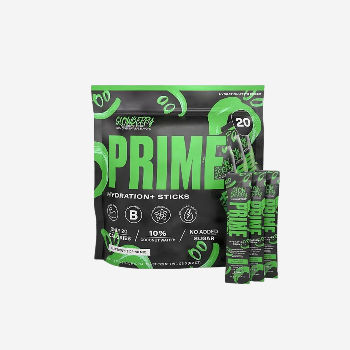 Prime Hydration + Electrolyte Drink Mix Sticks Glowberry